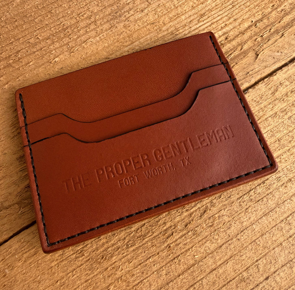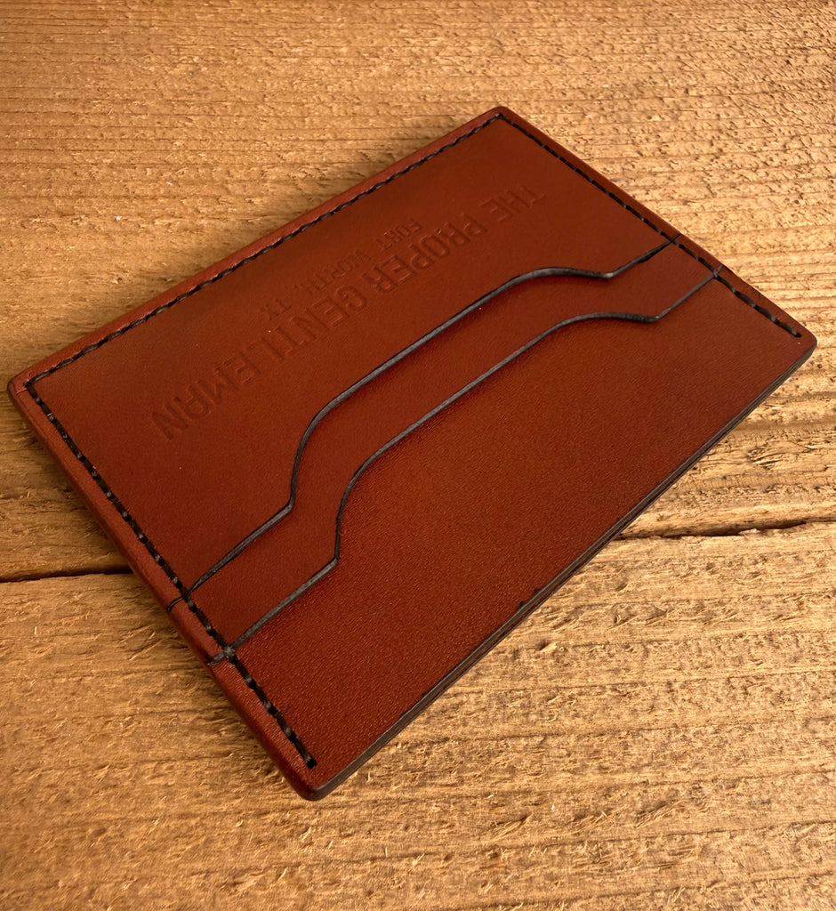 4 card slots and a center slot for a couple folded bills.